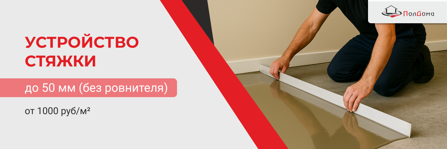 Устройство стяжки до 50 мм без ровнителя — оптимальное решение для квартир, домов и офисов, когда нужно быстро выполнить выравнивание пола при перепадах 5–50 мм без применения финишных самонивелирующих смесей. Такая стяжка до 50 мм подходит для новостроек и ремонта, позволяет скорректировать локальные неровности, усилить основание и подготовить его под ламинат, ПВХ/кварц-винил, линолеум или керамогранит. Метод совместим с системами тёплого пола, помогает убрать скрипы и «гуляющие» зоны, а также скрыть инженерные коммуникации, обеспечивая надёжную плоскость под чистовое покрытие.